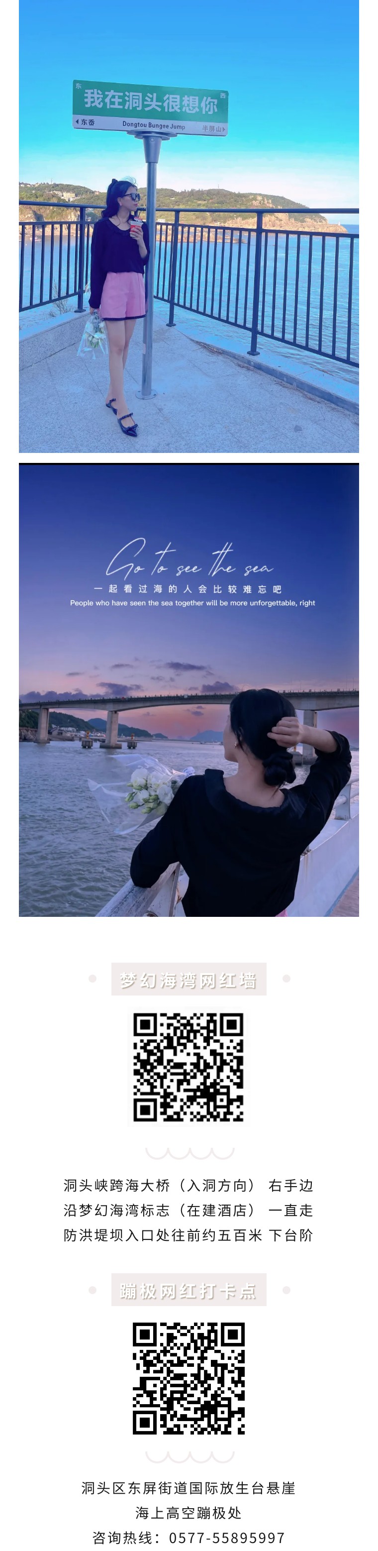 还记得小海悦安排的 华中海悦城&海上高空蹦极的梦幻联动吗? 活动当天一早就有挑战者来敲门 限量款的饮品,特调的咖啡 可可爱爱的小海悦 已在朋友圈掀起一股弄潮儿啦~ 这不联合行动组听说七夕将至 特邀梦幻海湾为大家准备#以爱之名#特辑 情不自禁就想哼几句小曲 爱要怎么说出口,如果能将你拥有 ...... 快来洞头开启表白之旅吧! “梦幻海湾网红墙” “我在洞头很想你” 免费打卡领福利! 还等什么 这波热度必须赶上 小伙伴们快冲鸭! 图片来源 | 海上高空蹦极、CHENLL等 活动支持 | 温州市洞头华中房地产开发有限公司 浙江品森旅游发展有限公司 温州市洞头亿丰数据科技有限公司