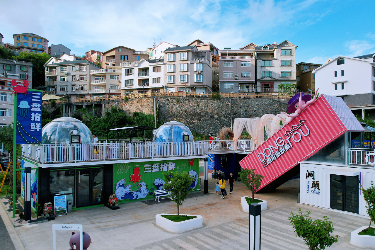 sān 三 pán 盘 bīn 滨 hǎi 海 mù 牧 gē 歌 就在今天! 洞头有个“海岛风情+潮酷集装箱”的 创意文旅街区正式开业! “滨海”和“时尚”是这里最显眼的招牌 吃喝玩乐购全方位体验 不仅是年轻人的“游乐场” 更是洞头潮流打卡新地标~ 更惊喜的是 今晚18:30在三盘乌贼岙沙滩 还有澎湃青春梦·向海最强声 洞头区第七届青年歌手大赛决赛 冠军争夺战即将开启~ 曾经的补晒渔网堆放点 现在成了文旅消费集聚区 三盘滨海牧歌 “漫岛湾”集装箱主题街区 位于三盘西山头,面朝乌贼岙沙滩 阳光之下,明亮的色彩相互碰撞 集聚区划分为3个区域 综合商业区、主题餐饮区、休闲沙滩区 恰到好处的空间和精心的布局 每一处都充满了色彩的氛围感 PART 01 海洋主题特色餐饮区 一楼是“三盘拾鲜”海洋主题餐厅 二楼是露天星空餐厅 还设有梦幻爱情走廊 彩虹集装箱楼梯、儿童游玩乐园 海洋贝壳和网红布朗熊打卡拍照点等 夜色渐浓,华灯初上 邀三五好友,谈天说地 将肉嫩味美的海鲜 吃到爽!吃到撑! 绝对是度过夜晚最酷的方式 PART 02 滨海休闲接待中心 滨海休闲接待中心 将海洋、沙滩、热带树等的元素 融入到集装箱主体结构中 舒适、休闲、富有情趣 拍照打卡很文艺 露天休闲餐吧设在二楼 拾阶而上,别致的格局 不论你是两人同行、三五好友 还是团队聚餐 都有为您定制的专属空间 PART 03 休闲特色沙滩区 乌贼岙沙滩上设有儿童水上乐园 浪漫爱情主题打卡点 摩托艇,帆船,游艇,沙滩露营等 走进这一幅惬意休闲的沙滩画卷中 玩玩水,踏踏浪 感受夏日清凉一刻! 百岛旅游攻略 (点击文字或识别二维码查看) 洞头最全旅游攻略之【游玩篇】 洞头最全旅游攻略之【出行篇】 洞头最全旅游攻略之【住宿篇】 洞头最全旅游攻略之【美食篇】 洞头最全旅游攻略之【娱乐篇】 洞头最全旅游攻略之【购物篇】 洞天福地·从此开头 ——余光中 洞头百岛旅游 微信公众号 洞头百岛旅游 官方微博 洞头百岛旅游 视频号 洞头百岛旅游 官方抖音 E游百岛 微信小程序 洞头超惠玩 微信小程序 旅游咨询热线:0577-63385180