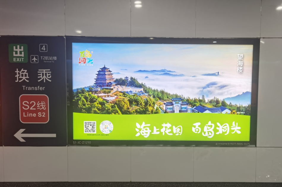 “海上花园 百岛洞头” 温州S2轻轨广告上线 ▲ S1/S2-机场站 ▲ S2线-新望站 ▲S2线-东山站 ▲ S2线-翁垟站 近日,“海上花园 百岛洞头”洞头文旅S2轻轨广告全面上线啦!精选洞头望海楼、鹿西鸟岛、韭菜岙沙滩、海霞青年营等特色文旅资源及业态的照片作为广告海报,在温州S2轻轨沿线机场、翁垟、柳市、新望、东山、海城、鲍田、天河、沙城等9个重要站点向八方游客展示百岛洞头! ▲S2线-鲍田站 ▲S2线-海城站 ▲ S1/S2-机场站 ▲ S2线-柳市东站 ▲S2线-沙城站 ▲ S2线-天河站 百岛旅游攻略 (点击文字或识别二维码查看) 洞头最全旅游攻略之【游玩篇】 洞头最全旅游攻略之【出行篇】 洞头最全旅游攻略之【住宿篇】 洞头最全旅游攻略之【美食篇】 洞头最全旅游攻略之【娱乐篇】 洞头最全旅游攻略之【购物篇】 洞天福地·从此开头 ——余光中 洞头百岛旅游 微信公众号 洞头百岛旅游 官方微博 洞头百岛旅游 视频号 洞头百岛旅游 官方抖音 E游百岛 微信小程序 洞头超惠玩 微信小程序 旅游咨询热线:0577-63385180