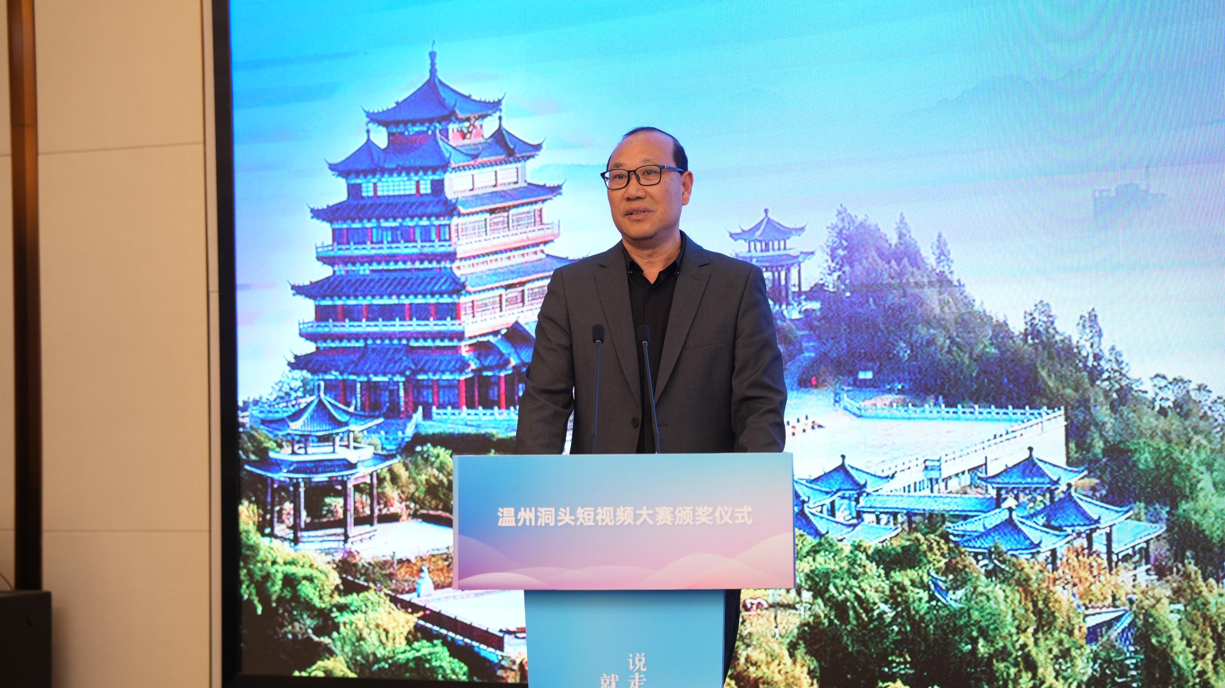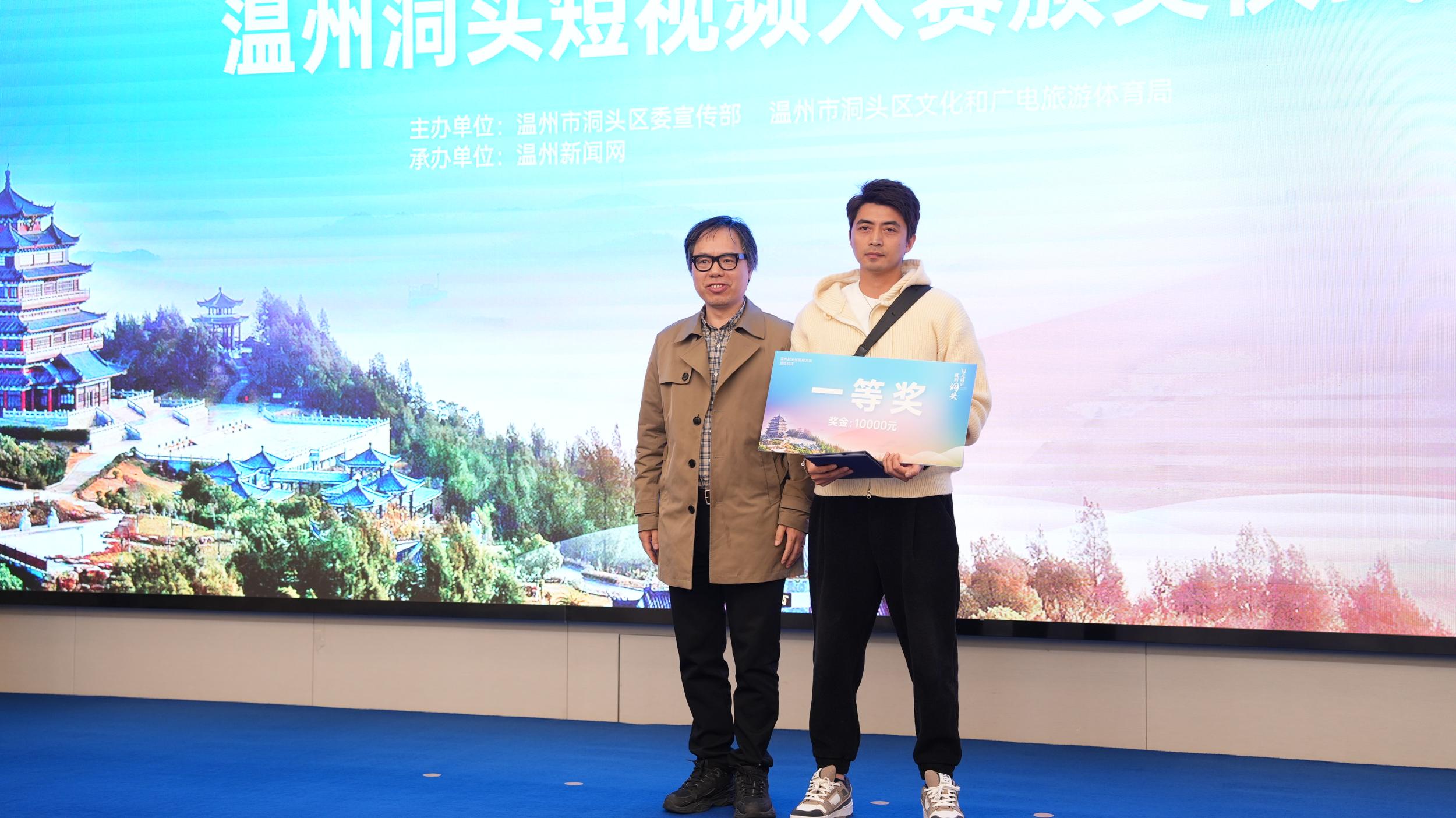 二等奖作品获奖者领奖“看浪花卷走孤寂,将自己交给大海......”作品《有时间就来洞头吧》以vlog的形式讲述了作者在洞头旅游的故事与体验,画面清新自然,语言诗意唯美,呈现出惬意轻松的旅游氛围,让人仿佛身临其境、沐浴在海岛阳光下。