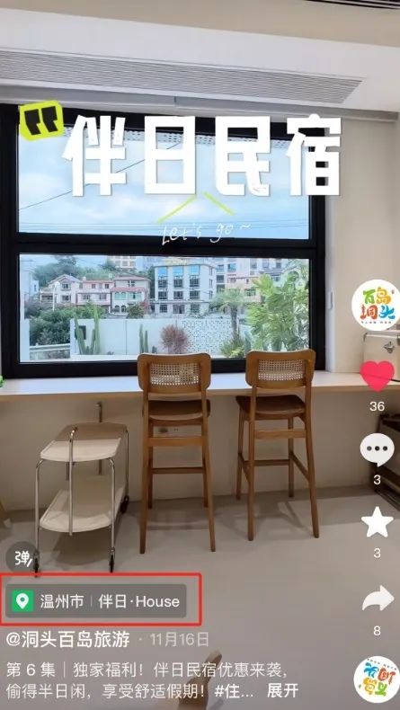 民宿暖冬钜惠 冬游洞头 第一期 暖宿放价 暖冬民宿,特惠来袭 择一美宿而栖,邂逅冬日暖意 冬日来一场说走就走的百岛之旅 这些温馨又惬意的 洞头冬日暖宿任你选~ (重点是超划算哦!) PART. 01 ONE 海霞青年营度假酒店 海霞青年营坐落于 海霞村女子民兵连旁 是一家集住宿、餐饮、会务 休闲等功能于一体的度假酒店 海霞青年营度假酒店有着秀丽的景致,深厚的文化积淀,浓郁的乡土风情。整个酒店包含26幢“虎皮”石屋建筑,拥有28个大床房、16个标间,别具匠心地将耐候钢和原有石厝结合,重塑建筑空间,打造鲜明的海岛识别度,使古村落焕发新生机。 每间客房都是满满的设计感,星级酒店的配套设施,透露着对生活品质的追求,让简单的睡眠,变得诗意浪漫。藏于山,观于海,隐于世,养于自然...这样一个让人融于山海、彻底放空身心的栖息空间,以海霞文化为基底的都市人的精神疗愈村,藏着你想要的隐奢生活~ 抖音搜“洞头百岛旅游” 民宿推荐 地址|洞头区北岙街道海霞村 酒店联系电话|0577-59380088 餐厅联系电话|0577-59380099 民宿暖冬钜惠 PART. 02 TWO 乡间渔舍 民宿是由老房子改建而成的 临近海边的村庄 藏着许多洞头著名景点 步行至海边仅需6分钟 出门就能看见自然成像的景观 乡间渔舍共有9套客房,渔舟、渔湾、渔洋、渔寮、渔墅、渔舍、渔乡、渔帆,每个房间的名字都具有浓厚的海岛特色,也正印证了乡间渔舍的名称。 院落内仿佛一处精致花园,绿植茂密,站在院落内,但听竹筒流水,园内鸟鸣。房间处处透露出民宿主人的用心,带给你一个属于自己的“秘境”。 抖音搜“洞头百岛旅游” 民宿推荐 地址|洞头区东屏街道仙岩路255弄1号 电话|13858830019 民宿暖冬钜惠 PART. 03 THREE 白迭汐语 满山的绿树如翠屏围护 屋咬着山,山抱着屋 石路、石屋、石阶依山而建 是一群不需出声 但却会“说话”的民宿群落 民宿外观保留了传统石屋的外观和结构,内部又是精致生活的北欧风,设计、搭配不炫技,简约自然,清新舒适。 从公区到房间都是舒适居家空间,只需通过到位的设计、订制家具和主人高品位的艺术品、配件装饰来体现差异化的品质和艺术气息。 抖音搜“洞头百岛旅游” 民宿推荐 地址|洞头区北岙街道白迭村 电话|18957766590 民宿暖冬钜惠 PART. 04 FOYR 伴日民宿 原汁原味的茶木色色调 整体呈现出和谐的温润色系 在光线与阴影之间 以简雅的视像 打造一处放松心灵的安逸空间 用素雅质感的哲学征服每位住客的心,让你可以在这慢节奏的空间里放空自己,感受这份宁静之美。公共区域给予了大面积留白,辅之木质家具,令空间视效在简单中有层序感。 房间内飘逸的亚麻窗帘和舒适的棉质床单,为整个空间带来柔和的一面,当自然的风透过景观台吹拂而过时,空间更为空灵纯粹,涌动着欣然舒惬的情感。 抖音搜“洞头百岛旅游” 民宿推荐 地址|洞头区海滨路241号-1号 电话|15727834011 民宿暖冬钜惠 PART. 05 FIVE 汐舍海景度假别墅 海岛上的小别墅 不需要太豪华太浮夸 只想在日出日落时 搬一张躺椅,静看潮起潮落 静享海风轻拂,足矣 “汐舍”的名字,也寓意着美好的时光装修大面积采用纯白浅灰色系,是汐舍的特点,落地全景玻璃窗,给人最好的视觉体验。 汐舍共有四层楼九间房,借用了国风山水意境,略带禅意,又不失俏皮,空间通透明亮,仿佛使人瞬间跳出城市牢笼的束缚。 抖音搜“洞头百岛旅游” 民宿推荐 地址|洞头北岙街道三盘区11号 电话|15258663511 冬季旅行,省钱出行 舒适的住宿体验,温馨的暖冬礼遇 跨年、团建、聚会… 赶快在“洞头百岛旅游”抖音号囤起来! 未约随时可退哦~ •抖音APP扫码预定 • 关注“洞头百岛旅游”公众号 后续还将为大家推出 洞头民宿暖冬钜惠第二期 图片来源 | 轻图客、洞头传媒、各民宿商家等 百岛旅游攻略 (点击文字或识别二维码查看) 洞头最全旅游攻略之【游玩篇】 洞头最全旅游攻略之【出行篇】 洞头最全旅游攻略之【住宿篇】 洞头最全旅游攻略之【美食篇】 洞头最全旅游攻略之【娱乐篇】 洞头最全旅游攻略之【购物篇】 洞天福地·从此开头 ——余光中 洞头百岛旅游 微信公众号 洞头百岛旅游 官方微博 洞头百岛旅游 视频号 洞头百岛旅游 官方抖音 E游百岛 微信小程序 洞头超惠玩 微信小程序 旅游咨询热线:0577-63385180