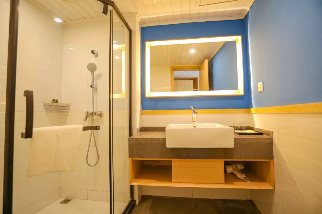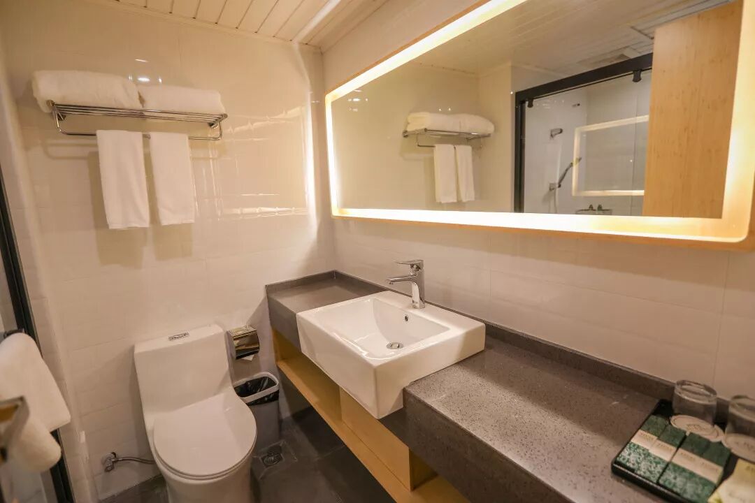 洗手间也始终贯彻着简约风格,但细节却不一点都不简单,洗护用品全部采用无硅油草本系列,崇尚自然,在美观的同时又注重低碳环保,这里必须给个好评!
